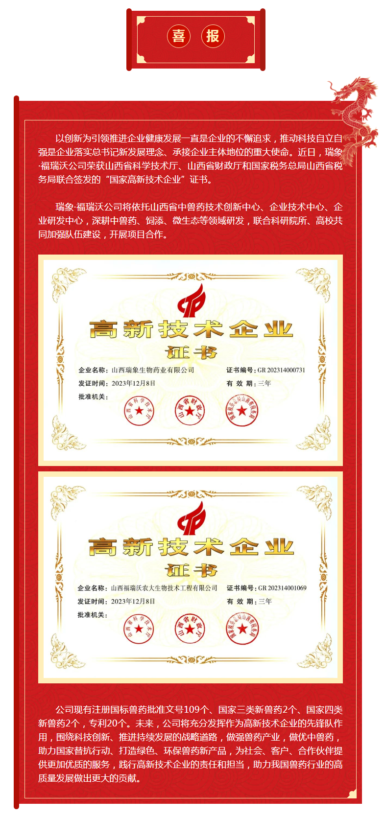 喜報 | 熱烈祝賀瑞象?福瑞沃公司第三次通過國家“高新技術(shù)企業(yè)”認定!